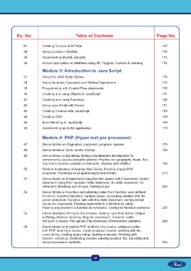 Ex. No. Table of Contents Page No.