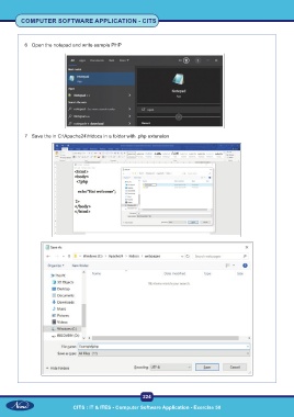 COMPUTER SOFTWARE APPLICATION - CITS 6 Open the notepad and write sample PHP 7 Save the in C:\Apache24\htdocs in a folder with .php extension 224 CITS : IT & ITES - Computer Software Application - Exercise 50