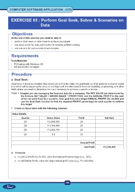 EXERCISE 65 : Perform Goal Seek, Solver & Scenarios on