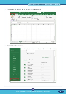 COMPUTER SOFTWARE APPLICATION - CITS 2 Go to the “File” tab. Now you can see the Excel in A1 reference style. 3 Select “Options.”from File menu 389 CITS : IT & ITES - Computer Software Application - Exercise 67