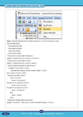 MsgBox “Your BMI is: “ &Round(bmi, 2) &vbCrLf& “BMI Category: “ & result