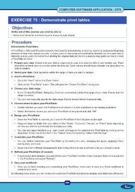 • You can also apply functions (e.g., sum, count, average) to the values in the PivotTable by clicking on the