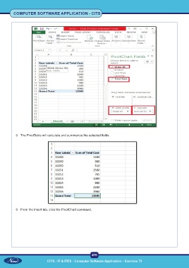 COMPUTER SOFTWARE APPLICATION - CITS 5 The PivotTable will calculate and summarize the selected fields. 6 From the Insert tab, click the PivotChart command. 470 CITS : IT & ITES - Computer Software Application - Exercise 75