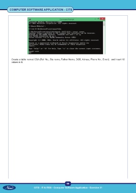 COMPUTER SOFTWARE APPLICATION - CITS Create a table named CSA (Roll No., Stu name, Father Name, DOB, Adress, Phone No., Email) and insert 10 values in it. 68 CITS : IT & ITES - Computer Software Application - Exercise 21