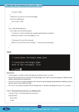 • We call the calculateArea method of the Rectangle class to calculate and display the area of the rectangle.