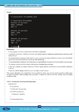 • In the main method, we create instances of Person using different constructors to demonstrate constructor