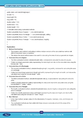 • The program uses method overloading to define multiple versions of the calculateArea method with