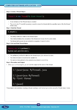 • The getName() method is called on the thread object (t) to retrieve its name.