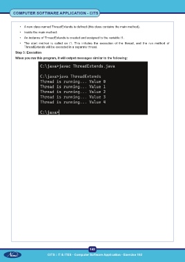 • An instance of ThreadExtends is created and assigned to the variable t1.