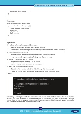 In summary, this example illustrates the implementation of multiple interfaces (Printable and Showable) in a class