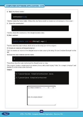 This program creates a simple graphical window (frame) with a label saying “Hello, I’m a simple container!” and