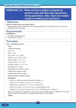 EXERCISE 123 : Write and test a python program to