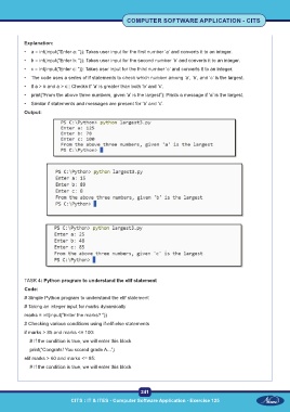• print(“From the above three numbers, given ‘a’ is the largest”): Prints a message if ‘a’ is the largest.