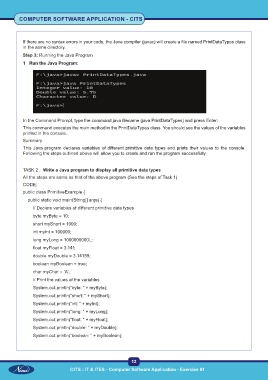 In the Command Prompt, type the command java filename (java PrintDataTypes) and press Enter: