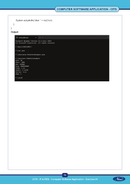 COMPUTER SOFTWARE APPLICATION - CITS System.out.println(“char: “ + myChar); } } Output: 13 CITS : IT & ITES - Computer Software Application - Exercise 81 CITS : IT & ITES - Computer Software Application - Exercise 81