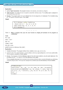 using the vars() function. The output will display the converted tuple and the dictionary of local variables.