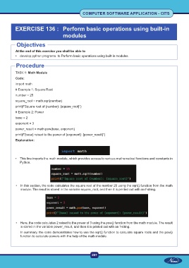 • In this section, the code calculates the square root of the number 25 using the sqrt() function from the math