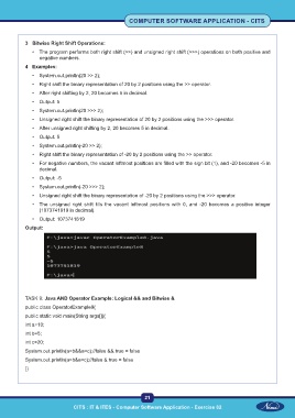 • Unsigned right shift the binary representation of -20 by 2 positions using the >>> operator.