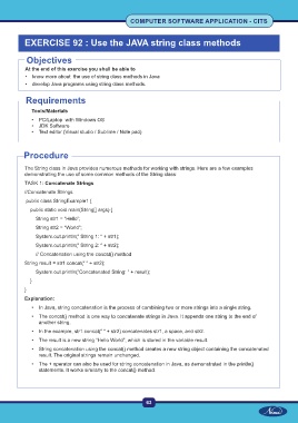• String concatenation using the concat() method creates a new string object containing the concatenated