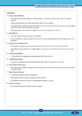 • The binarySearch method is called with the sorted array and the target element as parameters to perform