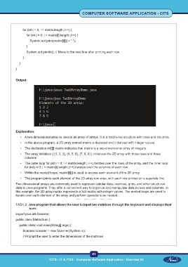 • The program prints each element of the 2D array row-wise, with each row printed on a separate line.