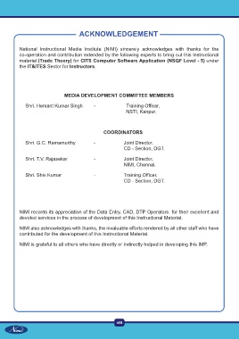 National Instructional Media Institute (NIMI) sincerely acknowledges with thanks for the