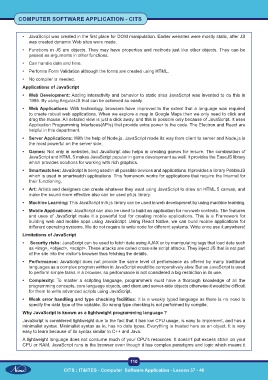 • Performance: JavaScript does not provide the same level of performance as offered by many traditional