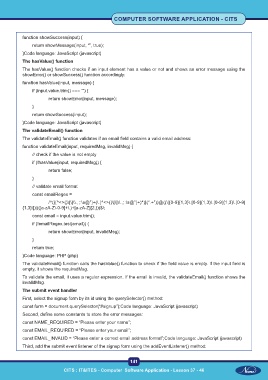 The validateEmail() function calls the hasValue() function to check if the field value is empty. If the input field is