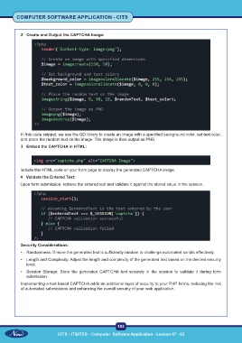 • Session Storage: Store the generated CAPTCHA text securely in the session to validate it during form