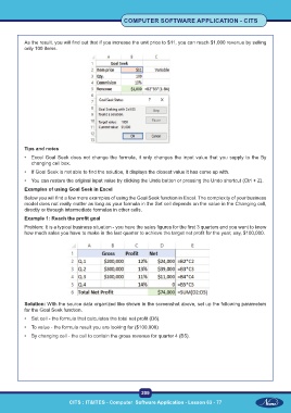• By changing cell - the cell to contain the gross revenue for quarter 4 (B5).