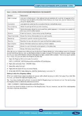 Table 1: EXCEL CONFIGURATION INFORMATION IN THE REGISTRY