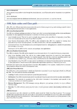 • Security: The JVM enforces Java’s security model, including access control, class-loading restrictions, and