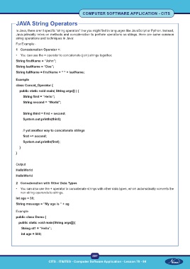 JAVA String Operators