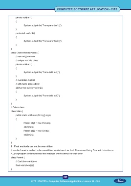 If we don’t want a method to be overridden, we declare it as final. Please see Using Final with Inheritance.