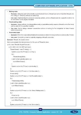 - Example: Using methods like sleep(milliseconds) or join(milliseconds) causes a thread to enter the timed