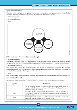 exceptions. For example, IOException, SQLException, etc. Checked exceptions are checked at compile-time.