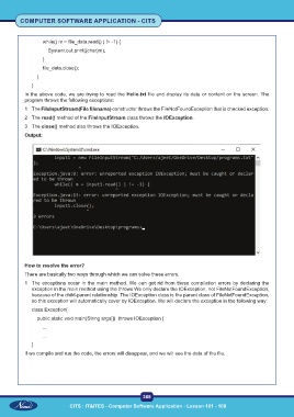 so this exception will automatically cover by IOException. We will declare the exception in the following way: