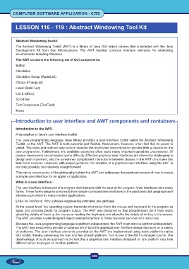 Development Kit from Sun Microsystems. The AWT handles common interface elements for windowing