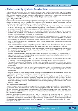 systems, networks, and data from cyber threats and attacks. There are various types of cybersecurity that focus