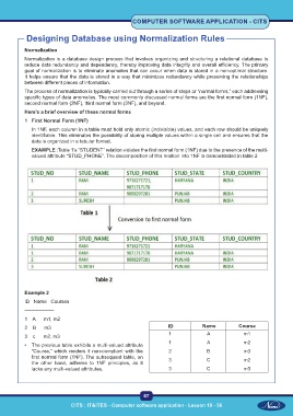 EXAMPLE :Table 1’s “STUDENT” relation violates the first normal form (1NF) due to the presence of the multi-