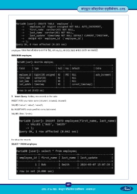 employee नामक टेबल की संरचना जानने के िलए, आप MySQL का DESCRIBE कमांड उपयोग कर सकते ह :