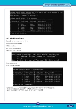यहाँ िदया गया return value यह दशा ता है िक DELETE कमांड को ोसेस िकया गया और एक पं हटाई गई।