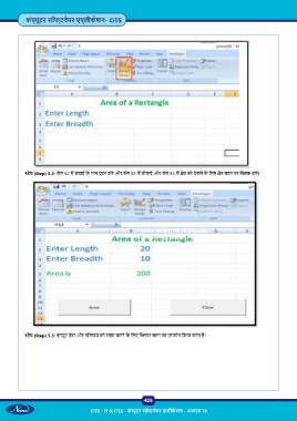 ेप (Step) 5.2: सेल B2 म लंबाई के मान एं टर कर और सेल B3 म चौड़ाई और सेल B5 म े को देखने के िलए े बटन पर क कर ।