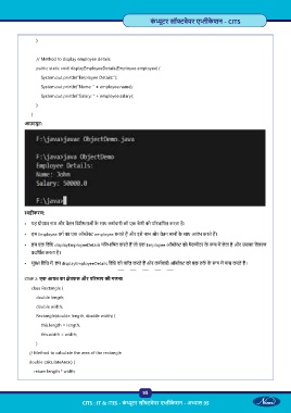 • हम एक िविध displayEmployeeDetails प रभािषत करते ह जो एक Employee ऑ े को पैरामीटर के प म लेता है और उसका िववरण