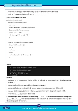 • हम मु िविध म 0 से n तक पुनरावृित करते ह और fibonacci िविध का उपयोग करके Fibonacci ृंखला को ि ंट करते ह ।