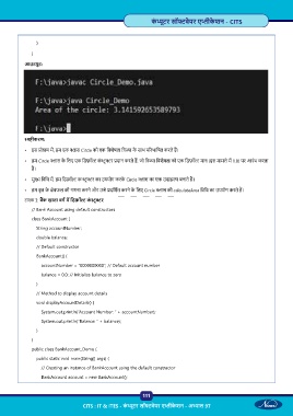 • हम वृ के े फल की गणना करने और उसे दिश त करने के िलए Circle ास की calculateArea िविध का उपयोग करते ह ।