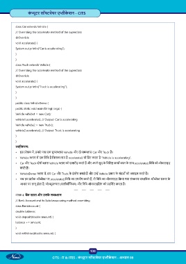 • Vehicle ास म एक िविध है िजसका नाम है accelerate() जो ि ंट करता है “Vehicle is accelerating”.