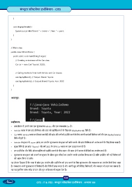 • Car ास, Vehicle ास का िव ार करती है और ांड और वष को दिश त करने के िलए अपनी यं की िवशेषता वष और एक displayDetails()