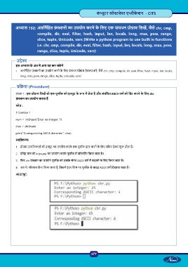 अ ास 132: अंतिन िहत फ़ं नों का उपयोग करने के िलए एक पायथन ो ाम िलख , जैसे chr, cmp,