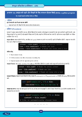 • फ़ाइल को पढ़ने और िलखने के िलए पायथन ो ाम डेवलप करना।